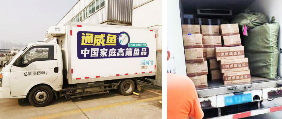 采購端:疫情就是命令,保供就是責任。在疫情防控的特殊時期,為保障合格的優質原料,通威魚基地供應部經理劉亞傑帶着員工每天吃住在車上,通威水産基地部同事奔波于各養殖基地之間,通過他們不懈努力,組織合格産品,協調配送車輛和物流公司,确保了優質鮮活魚産品的及時配送,全力保障成都區域活魚産品的正常供應,滿足了成都市内伊藤、盒馬、紅旗、永輝、沃爾瑪等各大商超的通威魚專櫃、社區生鮮連鎖、專賣店、餐飲公司、加工廠等渠道産品供應。