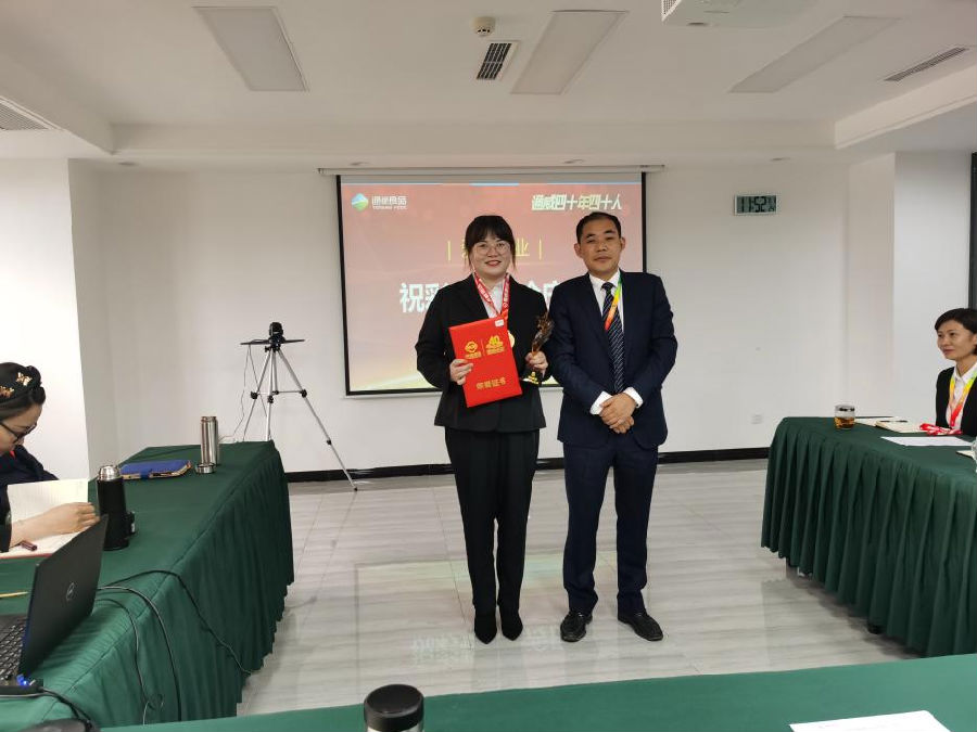 10月8日,食品闆塊在月度經營分析會後,舉行了“四十年四十人”和“20年忠誠員工”表彰儀式,通威食品總經理陳波、副總經理薛峰等參加活動并為獲獎代表頒獎。