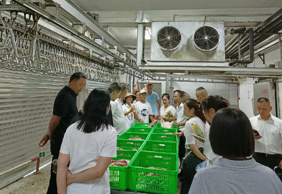 雅安區域畜禽客戶一行先到新太豐參觀生産線,後到春源食品車間,現場觀看春源生産的部分精加工産品。