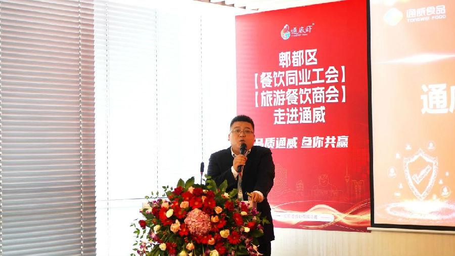 10月22日,郫都區餐飲同業公會·郫都區餐飲旅遊商會等30餘人莅臨通威國際中心參加“品質通威·魚你共赢”參觀交流活動,通威蝦總經理楊建波、通威水産(烏魚)負責人郭進攜團隊熱情接待。