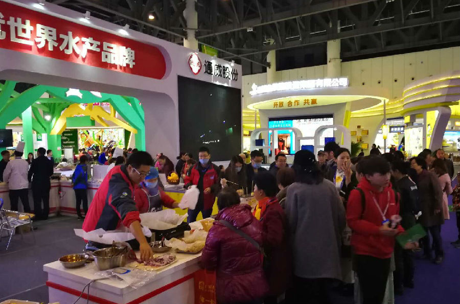 展會期間,通威食品旗下豬肉食品、鮮活水産品、水産制品、禽類産品等各類熱銷産品現身展台,工作人員現場烹饪并開展免費試吃活動,新太豐腌熏鴨、通威三文魚、紙包羅非魚、春源冷鮮豬肉等産品一經推出,當即吸引各路參展商及市民朋友的關注,大家紛紛駐足品嘗購買。
