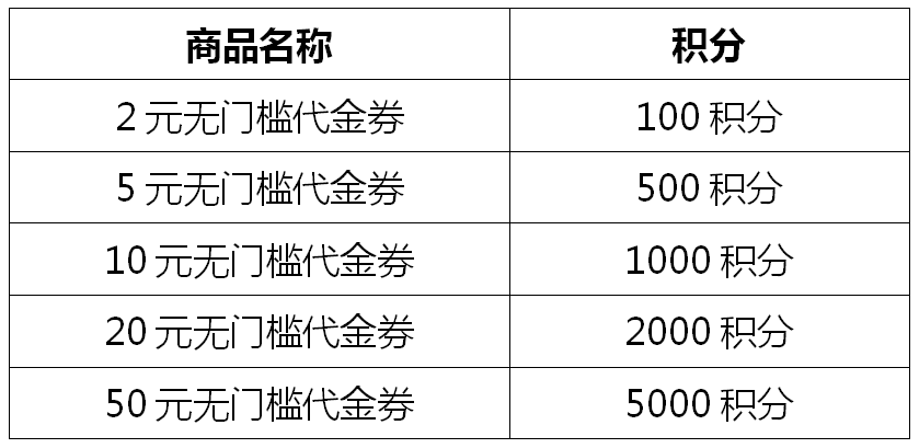 1、積分兌換無門檻代金券