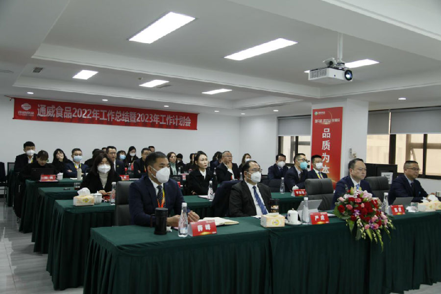 1月10日,以“強突破 增效益 敢挑戰”為主題的通威食品2022年工作總結暨2023年工作計劃會在奇力新峰大廈順利召開,通威股份副董事長嚴虎出席并作重要指示,通威食品總經理陳波,副總經理薛峰,總經理助理李天文等出席會議。各分子公司管理團隊全體人員現場及視頻參會。會議由通威食品人力資源總監黃勁松主持。