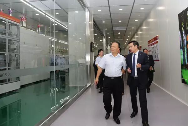 劉漢元主席陪同協鑫(集團)控股副董事長兼協鑫集成總裁舒桦參觀通威太陽能車間