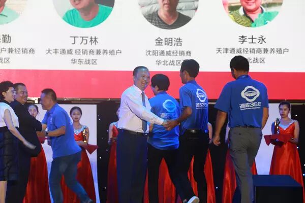 劉漢元主席、管亞梅董事長為“通威35年”卓越管理者頒獎并合影留念