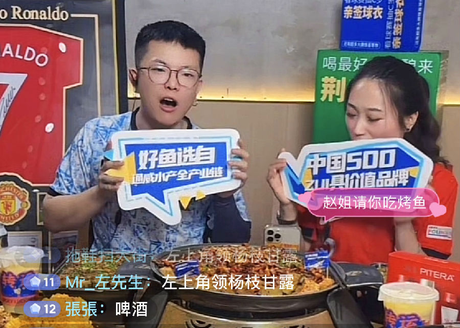 “三、二、一,上鍊接!”随着叮聲響起,荊都烤魚主理人趙姐在歐洲杯收官日,準時為直播間的粉絲放送包含2-3人、6-8人的歡聚套餐、夏日清涼單品等秒殺優惠券,其中,主打菜品——經典麻辣烤魚備受關注。在趙姐的講述中,粉絲們得知荊都烤魚原料選自通威水産全産業鍊,魚從苗種挑選,養殖,到上餐桌,全程專人把關,時刻踐行品質優先的食材理念。該場直播評論區互動紛呈,場觀突破55000人。