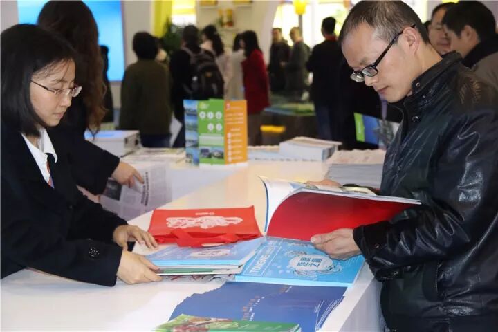 逛展觀衆翻閱通威展台宣傳資料