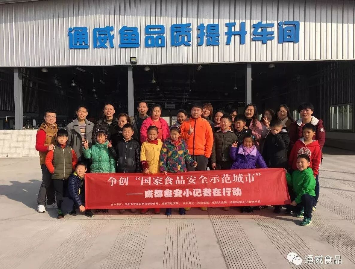 近年來,成都市在積極創建國家食品安全示範城市方面取得了豐碩的成果。通威食品在食品安全方面常年嚴格把控,做到品質、健康雙保證。12月10日,由成都市食品藥品監督管理局、成都市教育局主辦,成都商報·成都兒童團承辦的2017年成都食品安全小記者大型社會實踐活動,邀請了13組小記者和其家長們前往通威魚園區和通威(成都)水産有限公司工廠,學習水産品知識,了解通威水産品如何在源頭保障食品安全衛生。