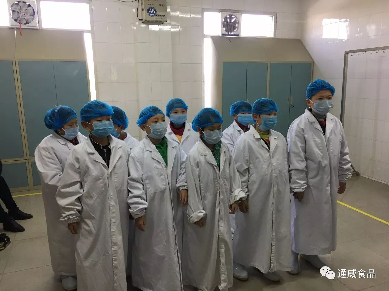 緊接着又前往通威(成都)水産食品有限公司研發室,跟随食品研發人員了解研發工作及食品安全應注意的常見問題。雖然因為衛生要求非常嚴格,不允許小朋友進入生産車間參觀,但工作人員讓小朋友們試穿工作服,體驗進入食品生産區前的洗手、消毒、再清洗、烘幹等流程。繁複但嚴謹的程序讓到場參觀的人深感通威食品對食品衛生的嚴格要求。